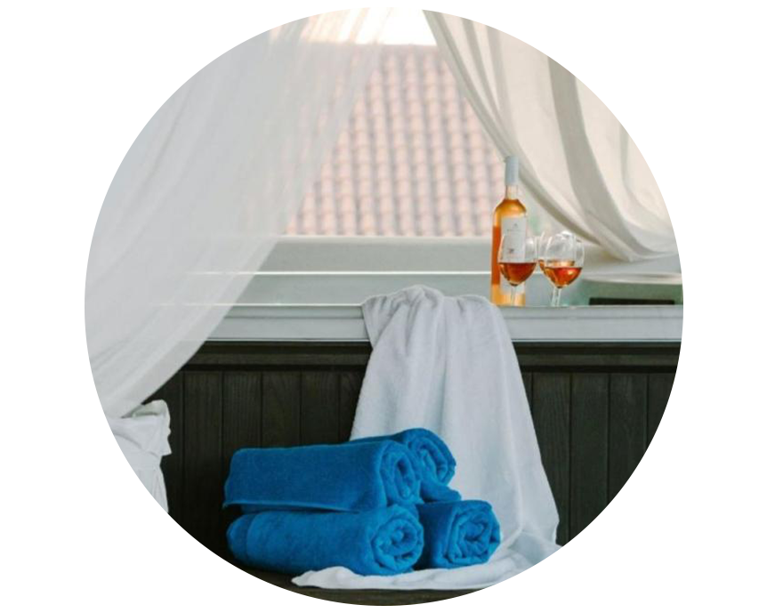 Σάουνα & Εξωτερικό Τζακούζι με θέα το απέραντο γαλάζιο.
